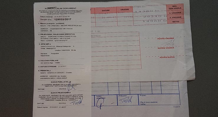 Slika 10. Komercijalni dokument sukladno EU Uredbi 1069/2009 i 142/2011 koji prati svaku pošiljku; izvor: autor