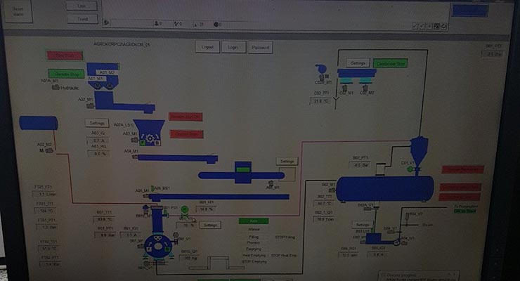 Iz navedenih spremnika se automatski prebacuje u sterilizator uz prethodno usitnjavanje i detekciju metala. Krv se direktno pumpa u sterilizator (max. udio krvi u punjenju 30%). Po završetku punjenja materijal se zagrijava koristeći toplinsku energiju akumuliranu u termo ulju (koje je zagrijano na izmjenjivaču topline predajom topline ispušnih plinova bioplinskog motora).
