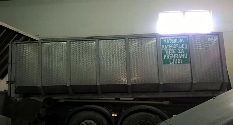 Slika 2. Istovar ovlaštenog vozila za prijevoz nusproizvoda životinjskog podrijetla kategorije 3. u prijemni spremnik prostora za preradu; izvor: autor