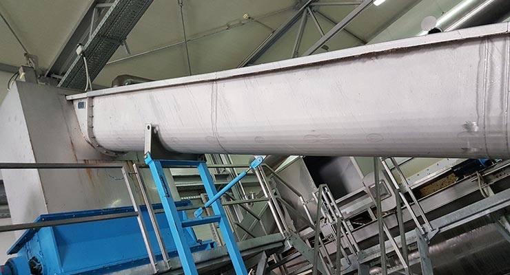 Slika 4. Zatvoreni sustav konvejera sa puževima za transport nusproizvoda životinjskog podrijetla kategorije 3. od prijemnog spremnika do mlina za usitnjavanje; izvor: autor